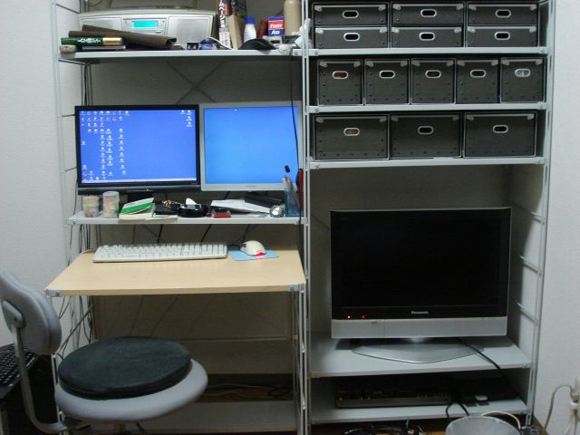 僕は2つ連結して右にDVDプレーヤーや26インチ液晶ディスプレイを置いて